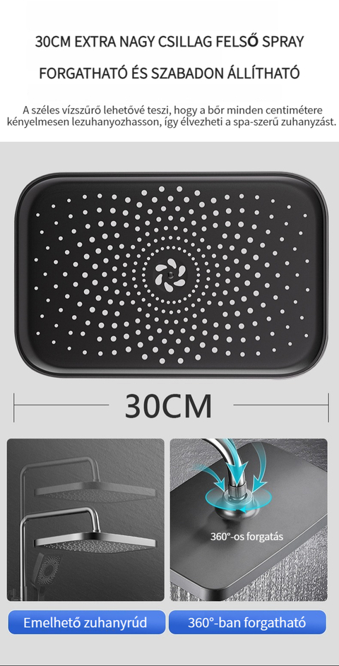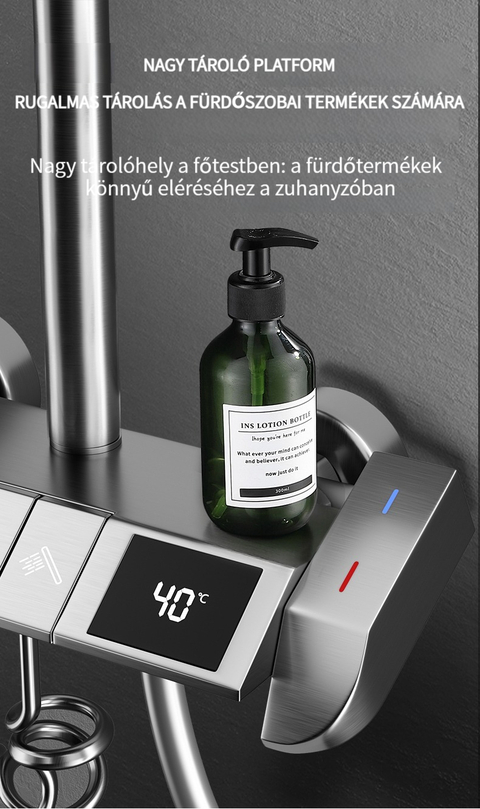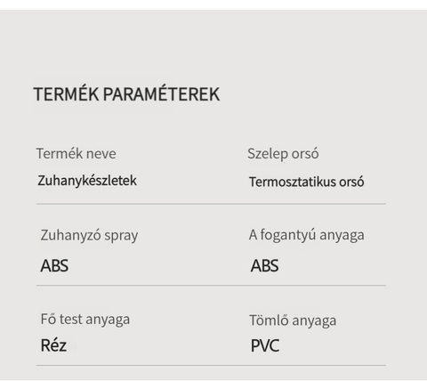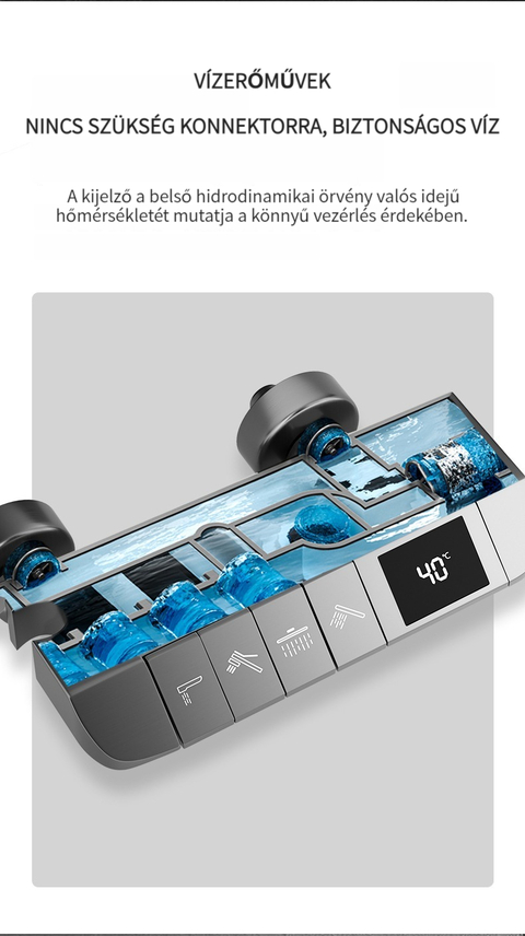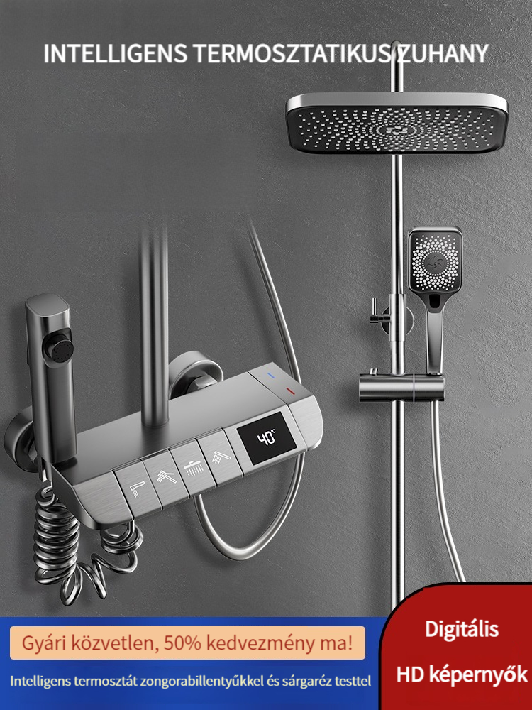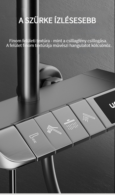 Zuhanykészlet, digitális képernyő, intelligens termosztát, zongorabillentyűk